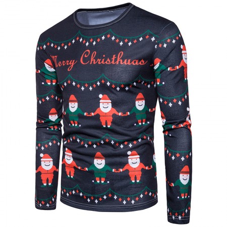 New 3D Personality Printing Fashion Men's Christmas Character Pattern Long-Sleeved T-Shirt
