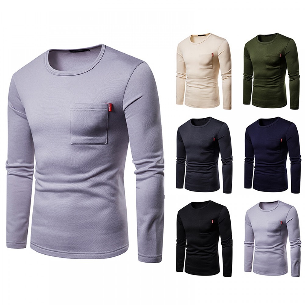 Men's Plus Size Plus Velvet Warm Long-Sleeved Round Neck T-Shirt Bottoming Shirt