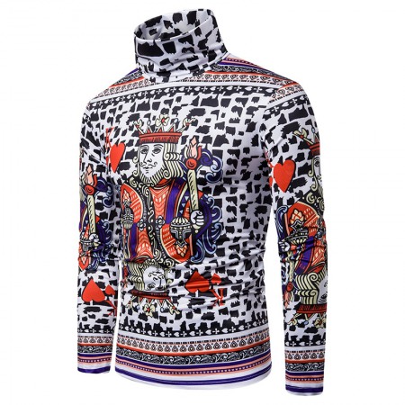 New Men's Large Size 3D Playing Cards Printing High Neck Long Sleeve T-Shirt Bottoming Shirt