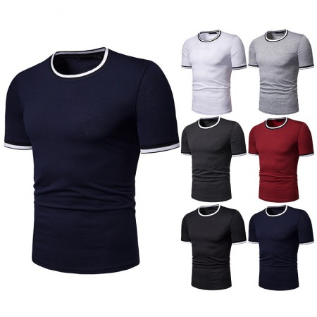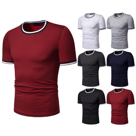 New Summer Men's Short-Sleeved T-Shirt Men's Contrast Striped Slim Casual T-Shirt
