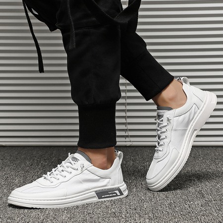 Summer Men's Board Shoes Soft Leather White Shoes Mens Leather Trendy Shoes Shell-Toe Daily Casual Shoes