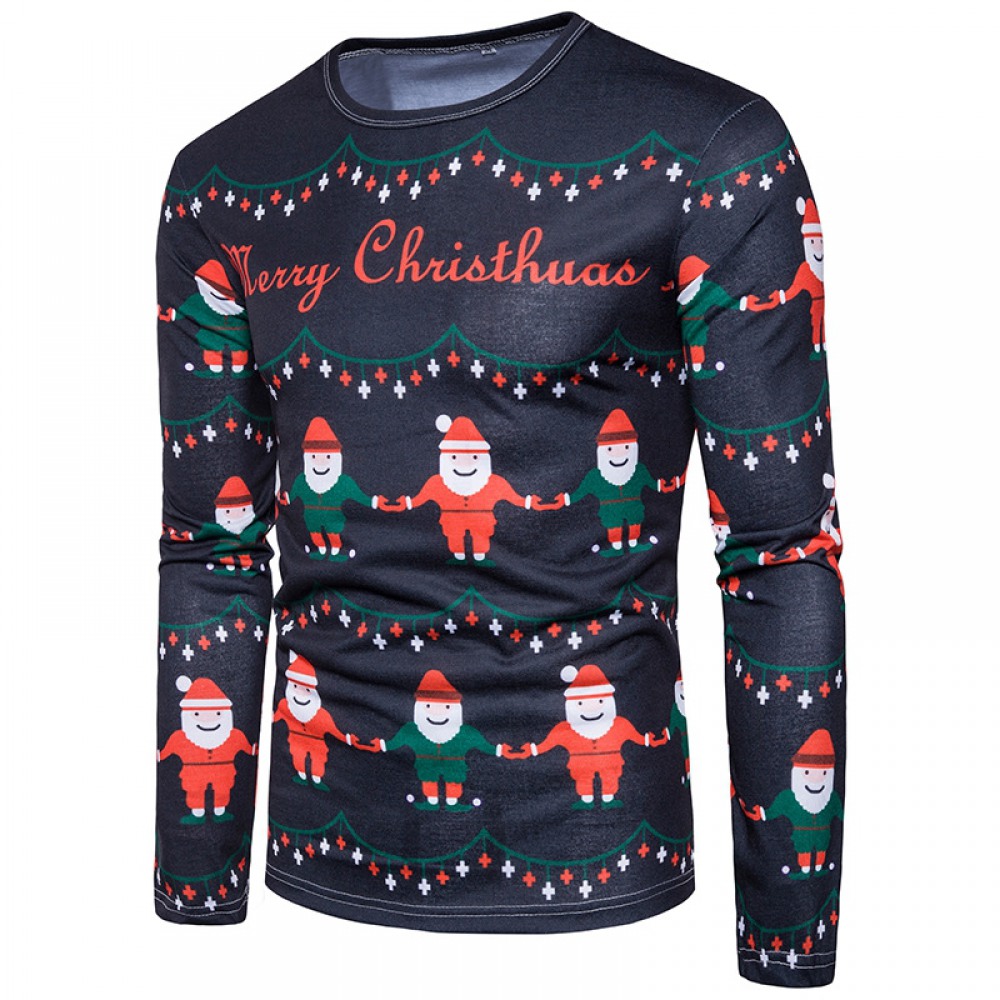 New Christmas Tree 3D Tie Printing Fashion Men's Long-Sleeved T-Shirt