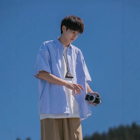 Men's Ice Silk Shirt Short Sleeve Half Sleeve Shirt