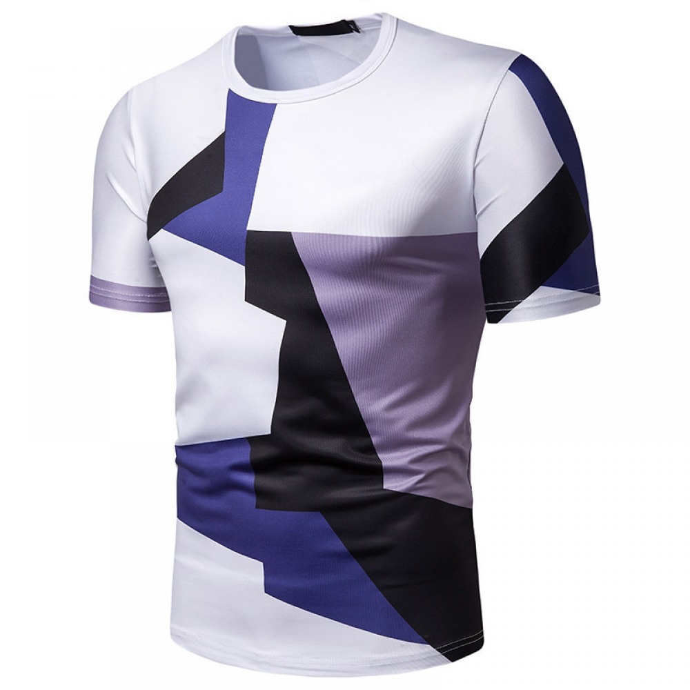 New Summer Men's Color Matching Print Short-Sleeved T-Shirt