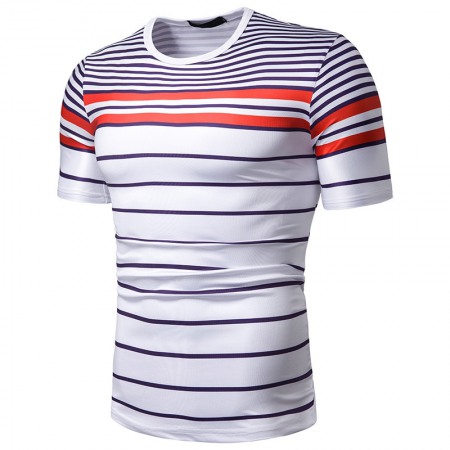 New Summer Men's Short-Sleeved T-Shirt Mens Contrast Striped Slim Casual T-Shirt