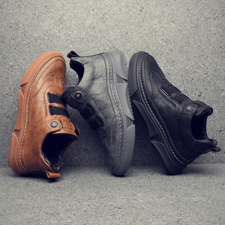 Summer Men's Board Shoes Soft Leather White Shoes Mens Leather Trendy Shoes Shell-Toe Daily Casual Shoes