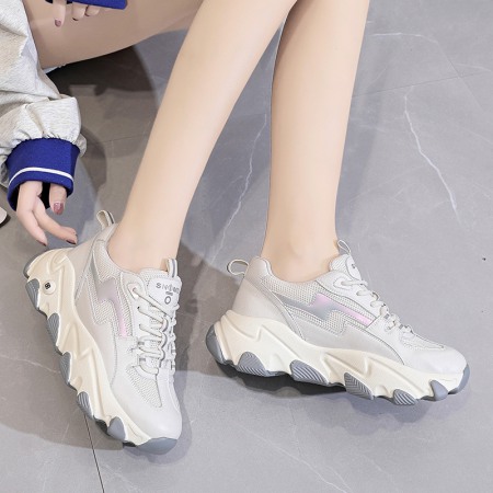 Women's Autumn New Casual Sports Shoes Mesh Breathable Thick Sole Height-Increasing Shoes Summer Trendy Sneakers