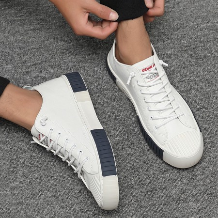 New Men's Trendy Shoes Summer Breathable White Board Shoe Leather Casual Shoes