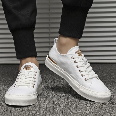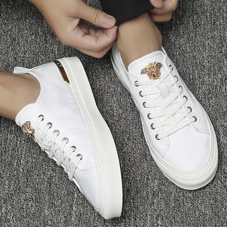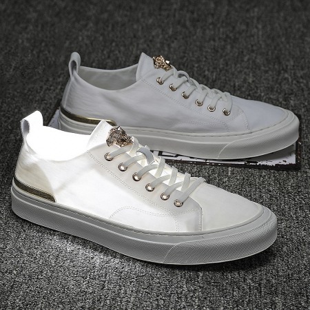 New Men's Trendy Shoes Summer Breathable White Board Shoe Leather Casual Shoes