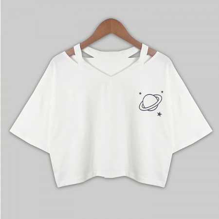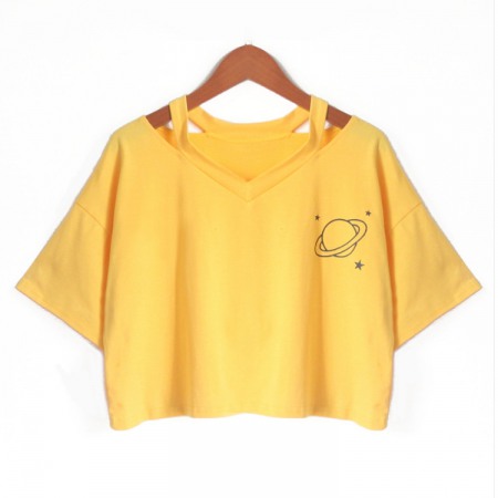 Summer New V-Neck Pineapple Applique Short Sleeve T-Shirt