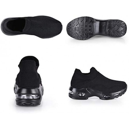 Womens Walking Shoes Sock Sneakers Slip On Mesh Platform Loafers Comfort Wedge Walking Shoes Black